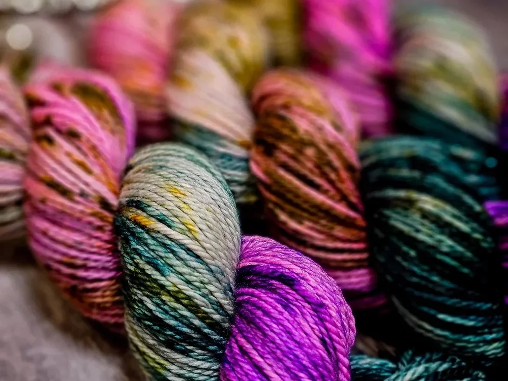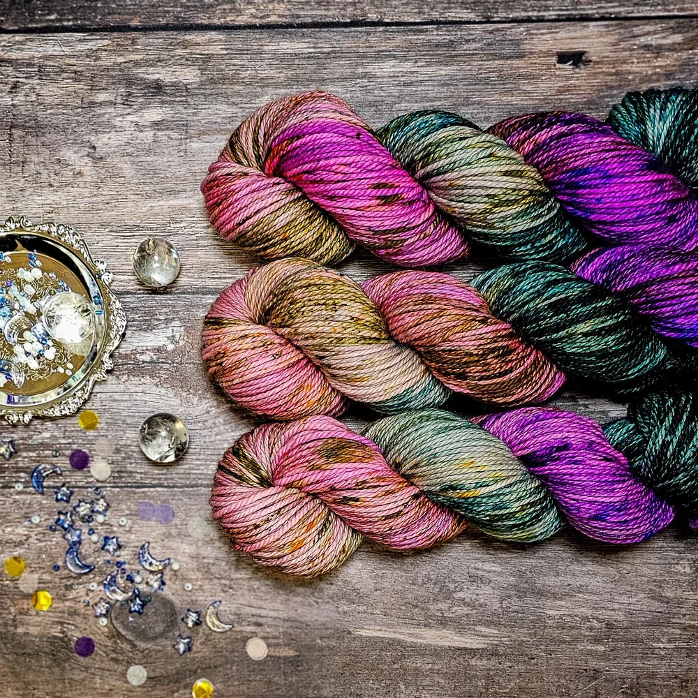 This colourway blends gentle purples, deep greens, soft browns, and muted blues to echo the moorland at different times of day. It is a palette that celebrates nature’s quiet drama and translates beautifully into knitted and crocheted projects of every kind.